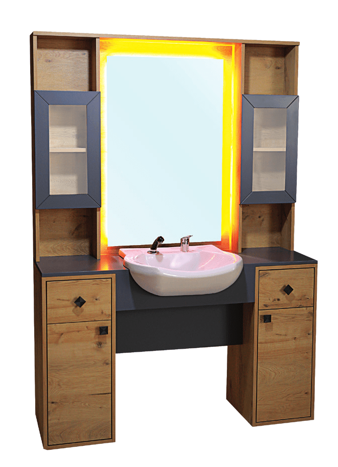 2. Front wash basin with taps and waste outlet.